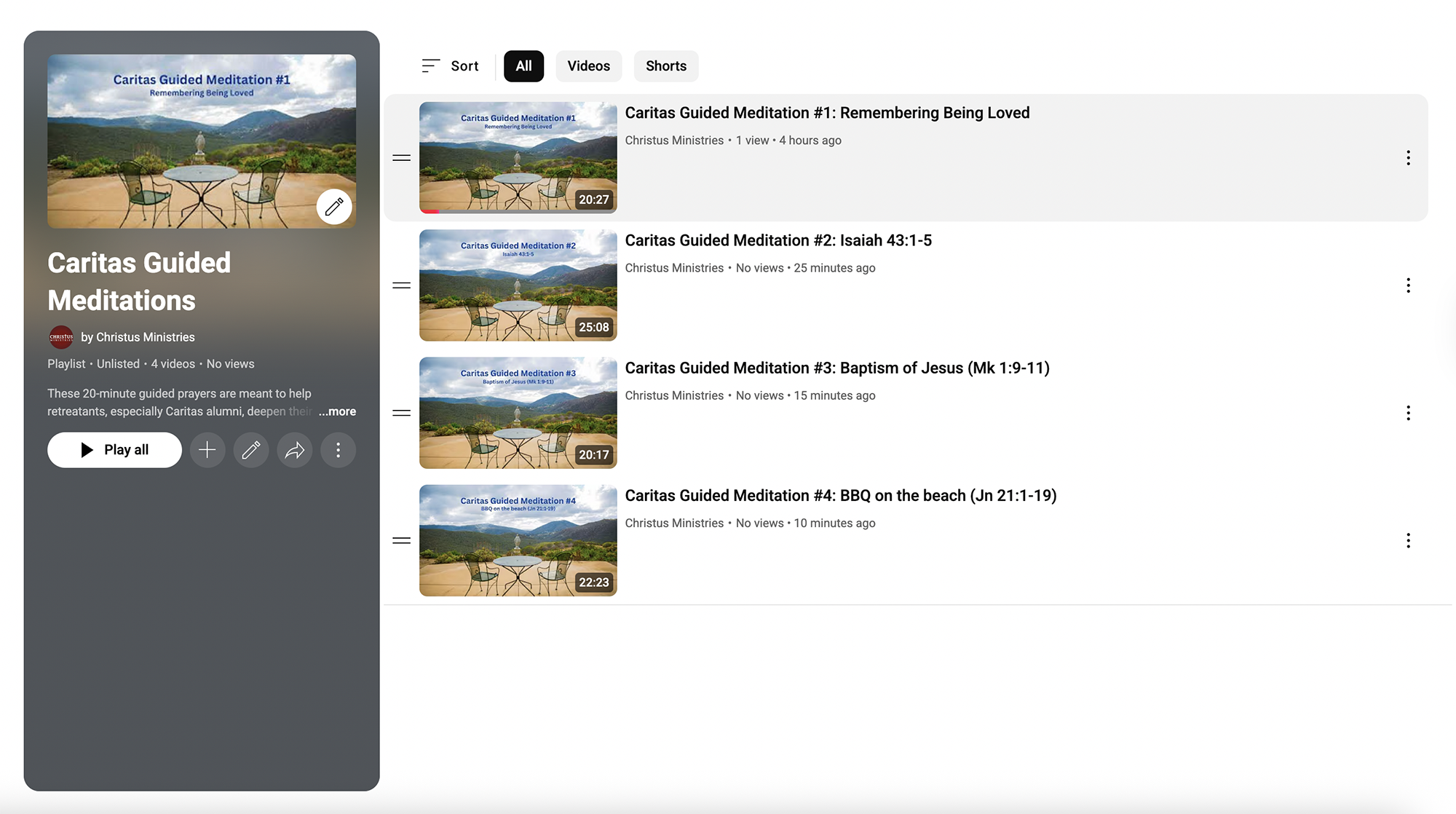 Click on the image below or THIS PLAYLIST on the Caritas Music YouTube channel. Choose a guided meditation to pray with.